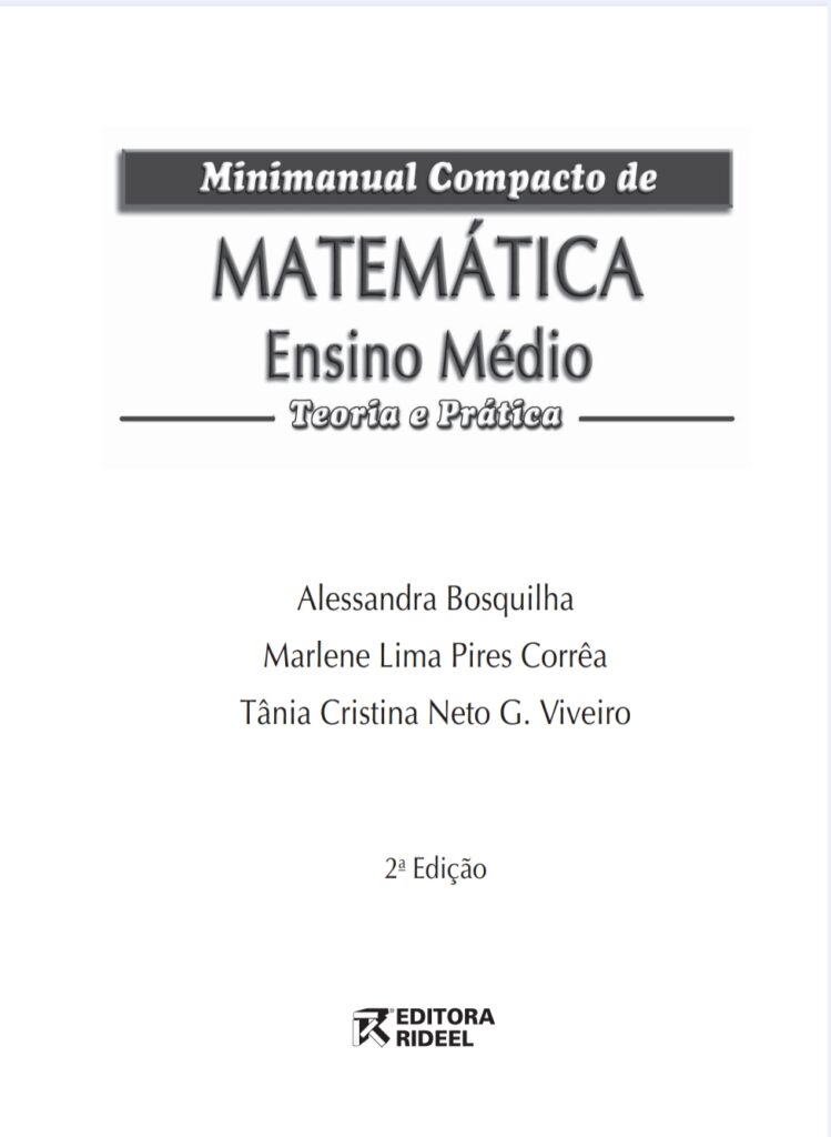 Baixar o livro Minimanual Compacto de MATEMÁTICA Ensino Médio Teoria e Prática – Alessandra Bosquilha, Marlene Lima Pires Corrêa, Tânia Cristina Neto G. Viveiro, – 2ª Edição EDITORA RIDEEL